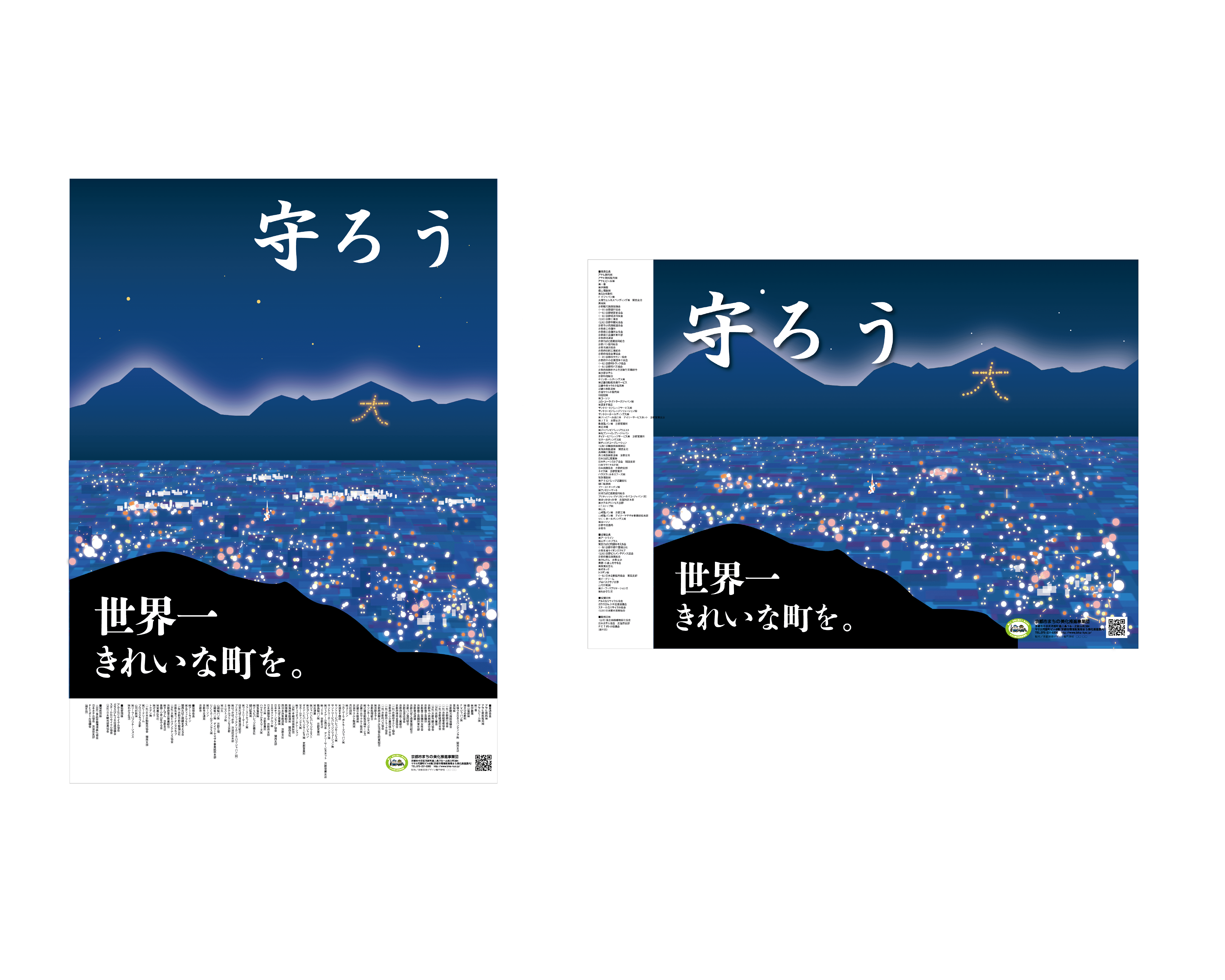 京都市のまち美化ポスターの公募に応募しました。 世界一きれいと言われている京都の夜景を守っていこうという気持ちを持って作成しました。 また、目につきやすいように文字のフォントを変え画面が単調にならないようにデザインしました。